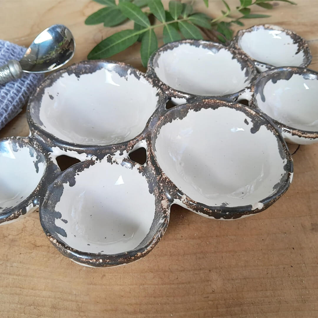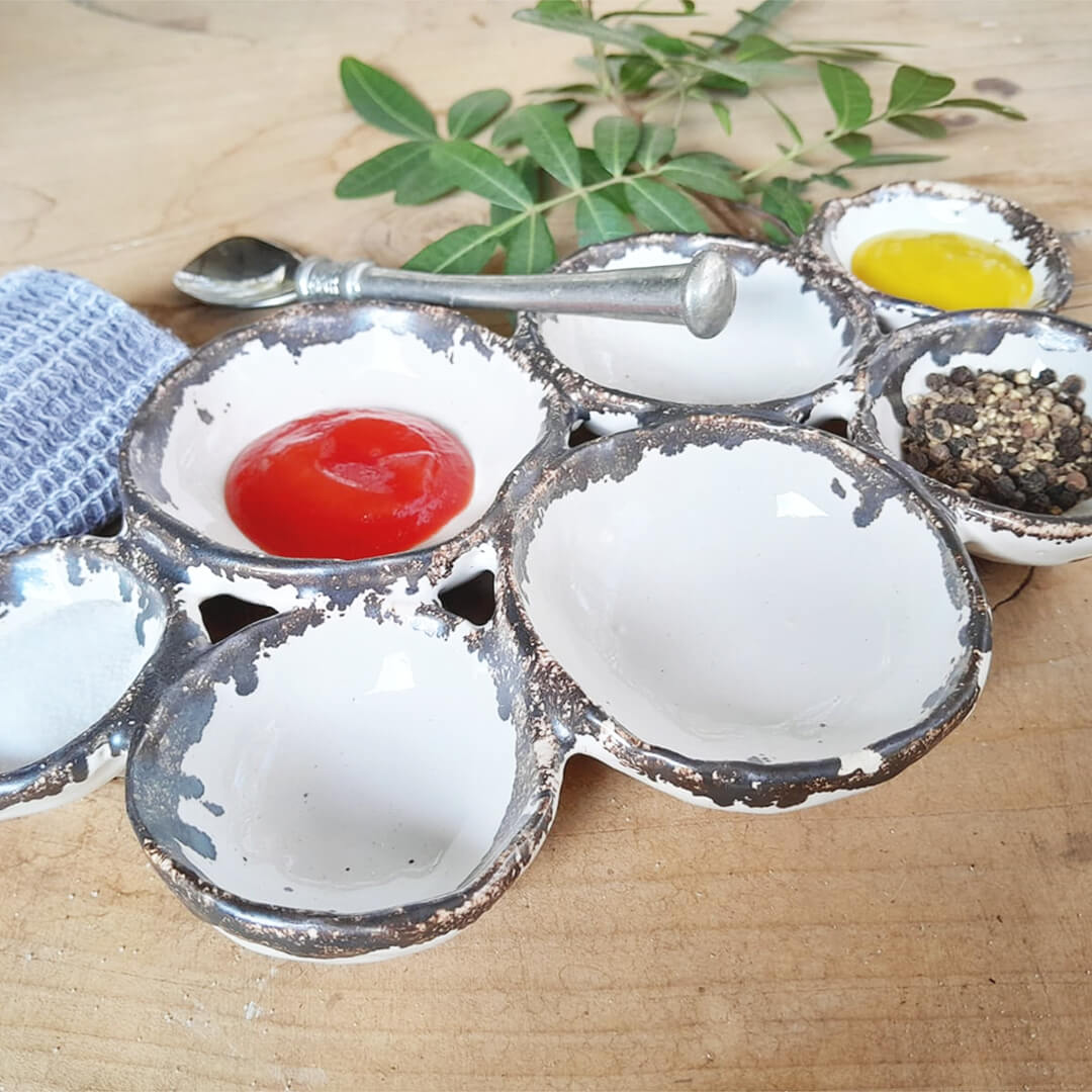 The beauty of this multi server bowl there is room for so many condiments or fill it with lots of different chocolates for your guest to choose from. Each piece is unique and has its own personality.