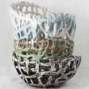 The beauty of lattice ceramics is its simplicity and the raw, earthy shapes and colors - charcoal and white. Each piece is unique and has its own personality.