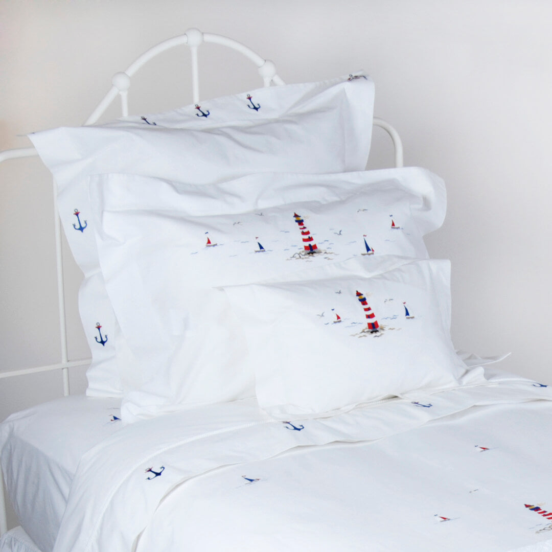 Gordonsbury's beautiful euro shams from our nautical collection hand embroidered anchors on the softest 100% cotton fabric.