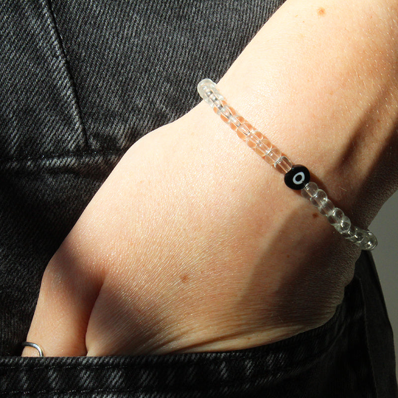 Our beaded glass bracelet with Greek mati (aka evil eye) an important symbol in Greek folklore and is considered to have the ability to protect the person who wears it.