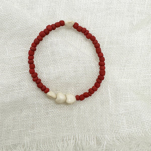 Handmade Red Ceramic Bracelet with Howlite Hearts | Made in USA