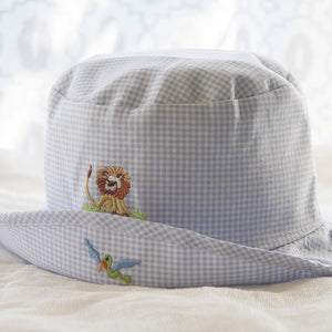 This adorable sun hat from Gordonsbury's baby wear collection features the king of the jungle. An ideal baby gift and co-ordinates well with Gordonsbury on safari bedding.