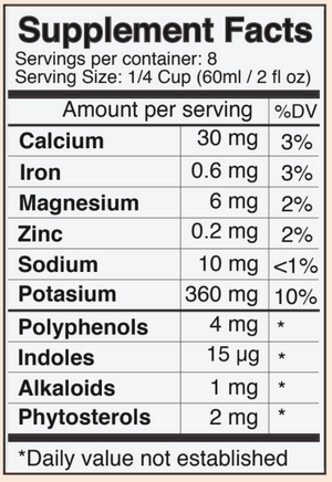 Serving size: Quarter cup (2 fl. oz / 60 ml) per day